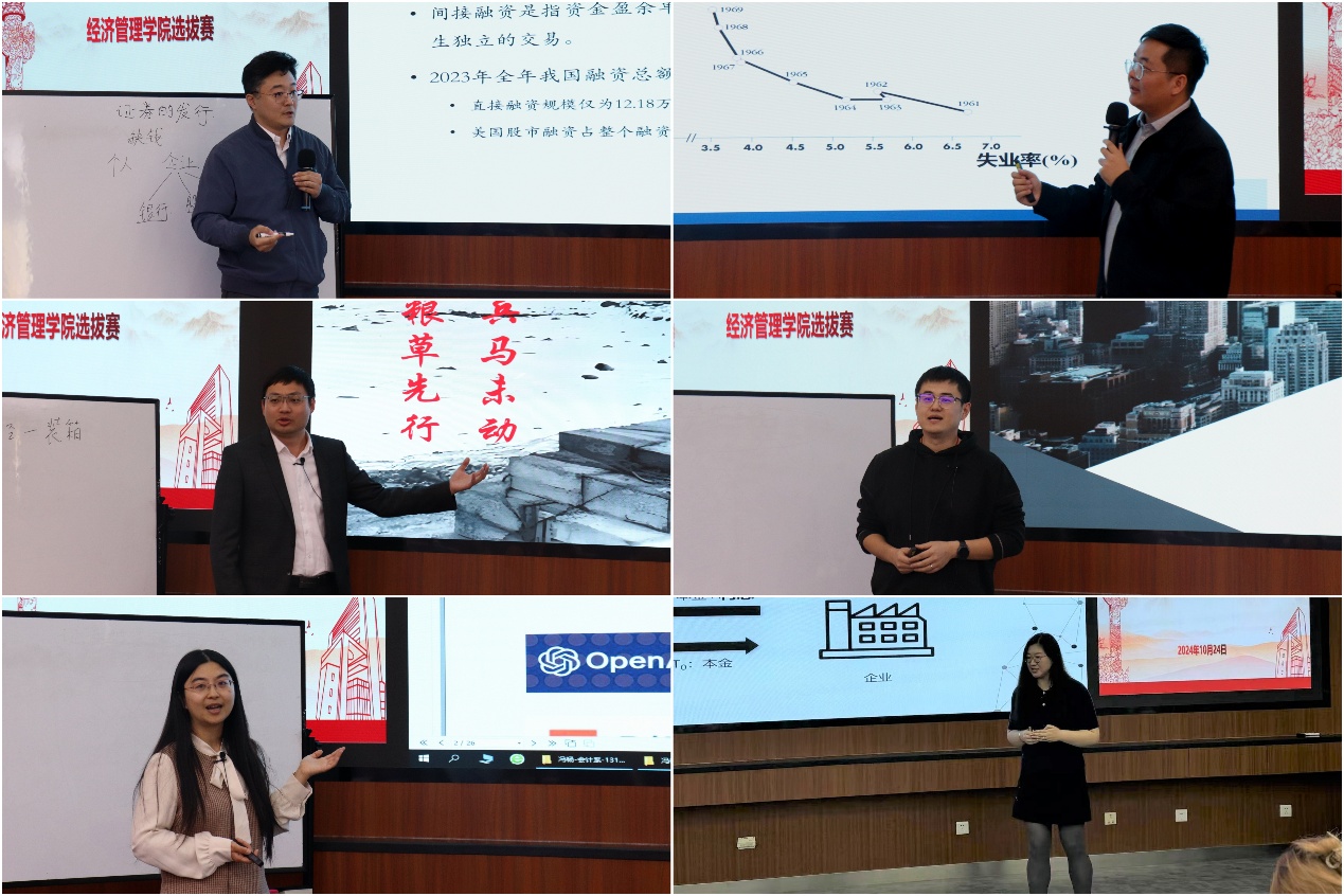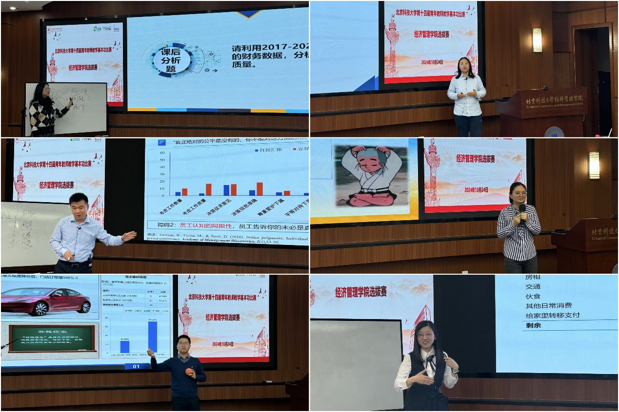 为了提高cgpay钱包下载 青年教师的教学技能,引导和鼓励青年教师热爱教学、研究教学,锤炼青年教师的教学基本功,cgpay钱包下载 于10月24日下午在经管楼313成功举办第十四届青年教师教学基本功比赛选拔赛,来自不同学科的12名青年教师参加。cgpay钱包下载 邀请学校教学督导组许纪倩老师、潘永泉老师、戴淑芬老师、cgpay钱包下载 党委书记武森老师、副院长范小华老师、cgpay钱包下载 教师发展中心执行主任孙莹老师以及各系教学主任共10位专家评委和来自不同学科专业的12名学生评委。比赛由cgpay钱包下载 党委副书记、副院长、分工会主席倪宇主持。