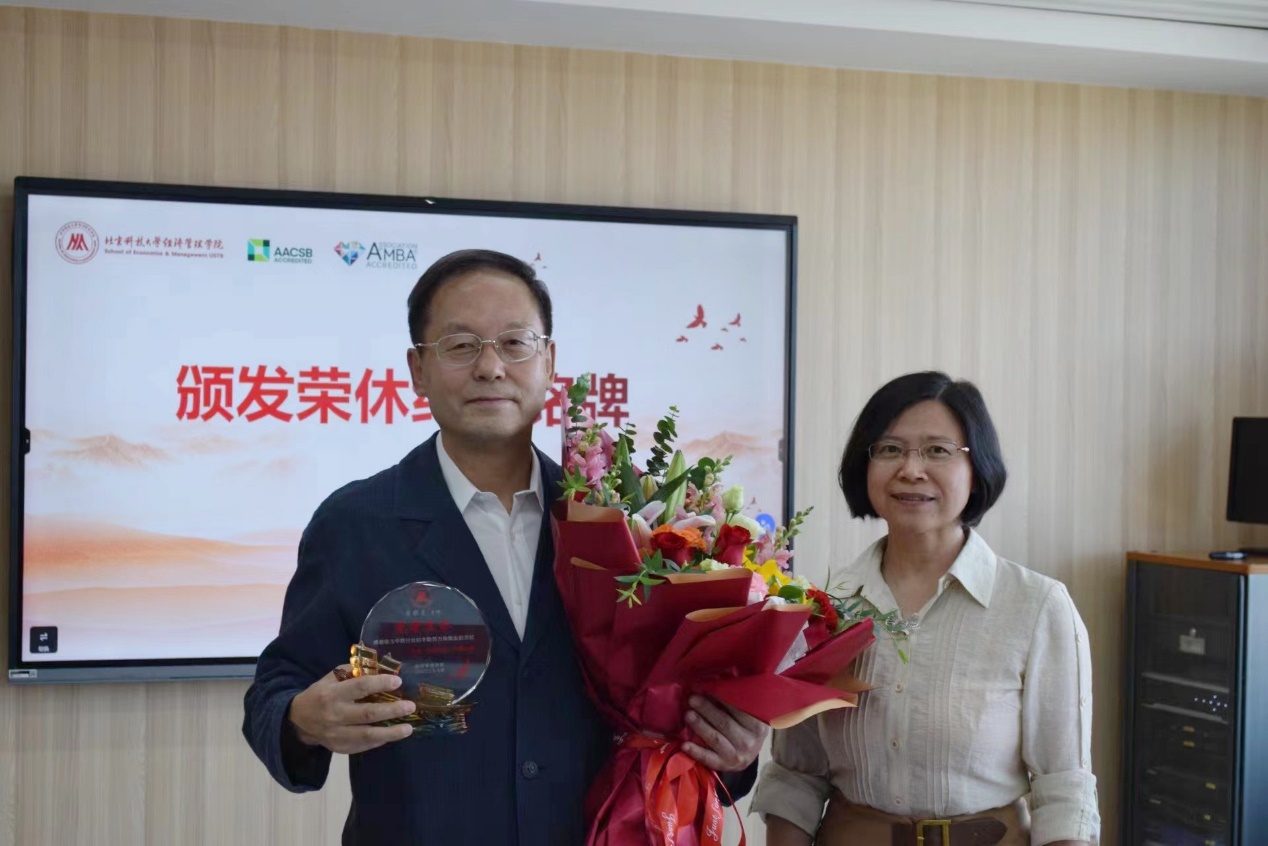 2023年6月29日下午,cgpay钱包下载 李铁克老师荣休会暨教书育人先锋颁发仪式顺利举行。cgpay钱包下载 领导、教师、校友、学生等30余人相聚于经管楼1205房间,为李老师在教育岗位上的辛苦付出和卓越贡献送上最真诚的感谢。活动由管工系副主任葛泽慧老师主持。