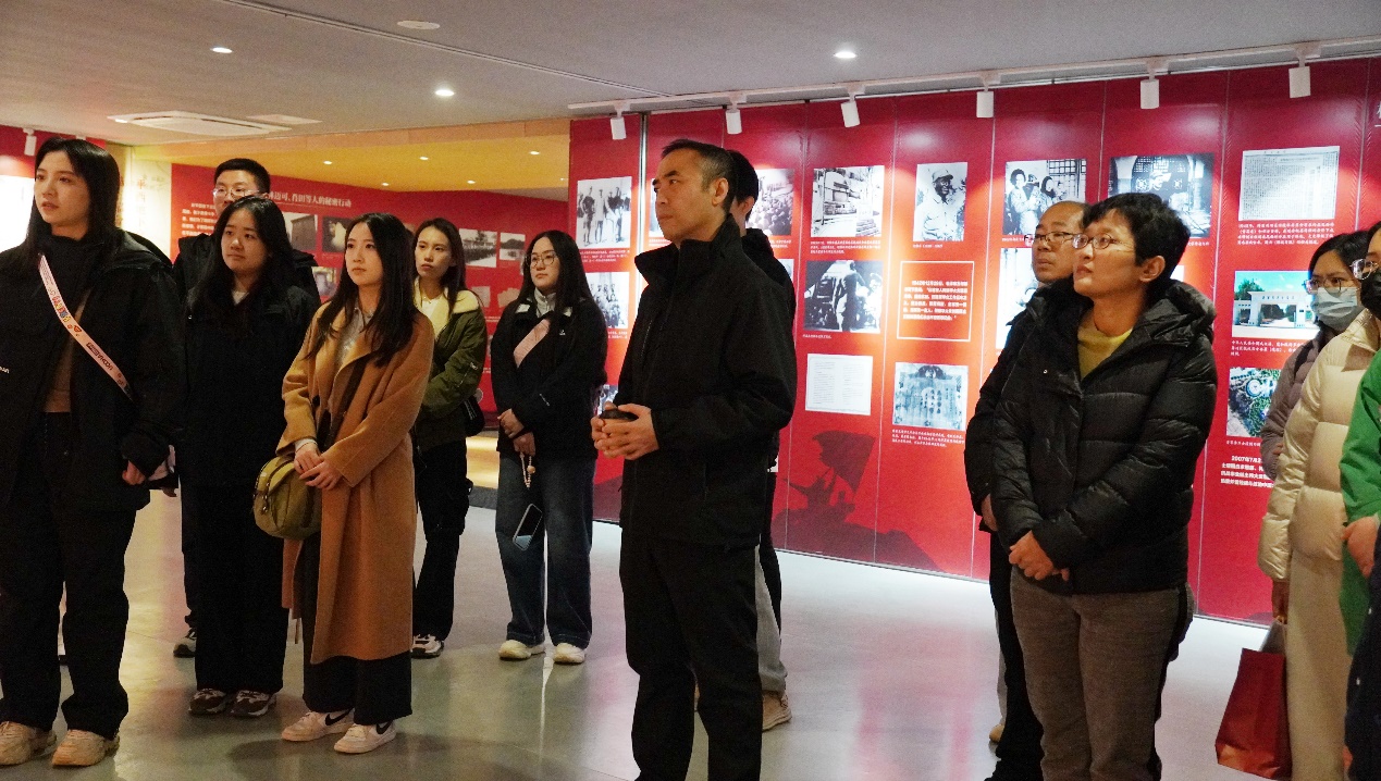 在基地讲解员的带领下,集体参观了“红色血脉:平西地下交通线主题展”展厅。作为海淀区第一个公开展出的以隐蔽战线为主题的区域性红色历史展览,生动再现了中国共产党领导的平西隐蔽战线的英勇斗争,还专题展示了国际友人与中国人民并肩战斗,为中国人民抗日战争和世界反法西斯战争最终胜利作出的重要贡献。