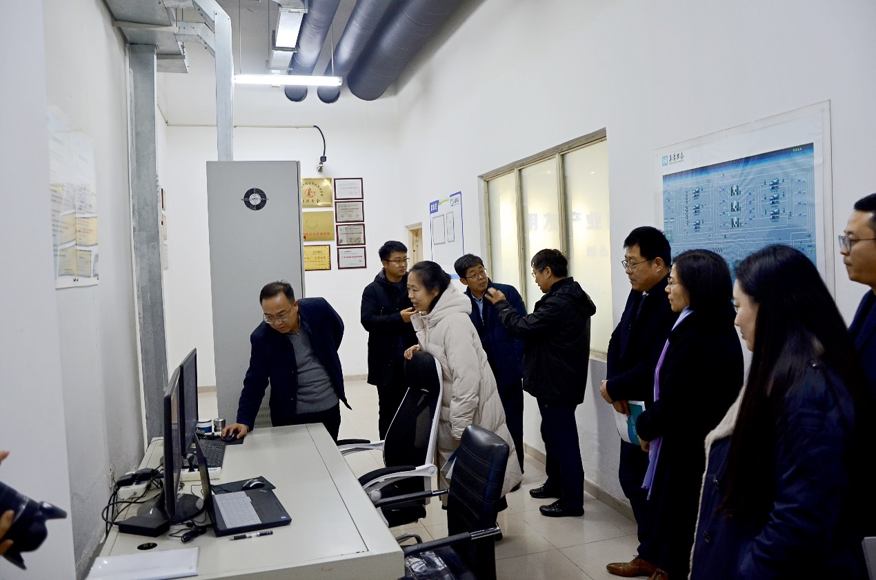 随后,参访团队在华清安泰相关负责人的陪同下,来到用友产业园地热可再生能源示范项目中心,认真听取了项目负责人介绍项目设计建设、运维管理等情况,并查看了项目实时运行数据。机房内能源设备通过二维码设备信息进行集中管理,实现线上+线下的运维模式,大大提高管理效率、降低能源使用成本,延长设备使用寿命。