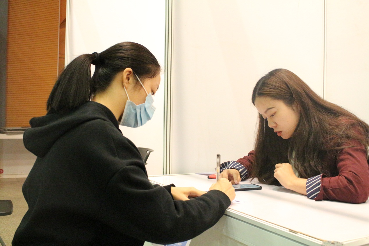 活动现场,各企业充分展现企业风貌,同学们也积极地向企业了解岗位要求,在一些企业咨询台前更是排起了“长龙”。此外,本次双选会特别设置了“简历问诊台”区域,由cgpay钱包下载 辅导员帮助同学们修改简历,答疑解惑,开展相关指导。