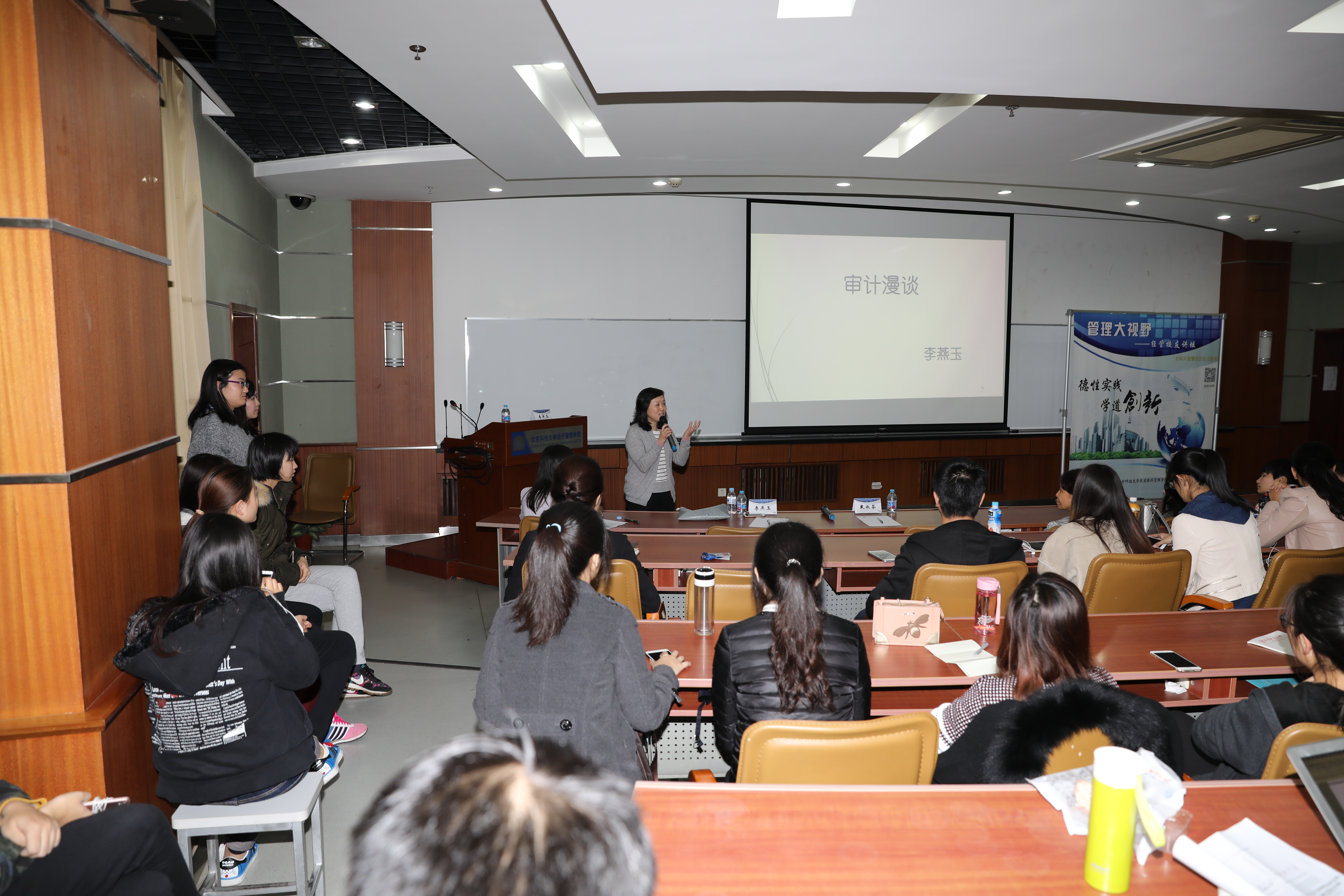 2016年10月21日,东凌cgpay钱包下载 “管理大视野—经管校友讲坛”第十四讲在经管楼312教室举办。本期讲座主题为“审计漫谈”,主讲嘉宾为我院管研88级校友李燕玉。李燕玉校友自1992年起从事审计工作,现任普华永道中天会计师事务所审计部合伙人并主管北方区的矿业企业客户,目前兼任中国证监会第六届上市公司并购重组审核委员会委员。