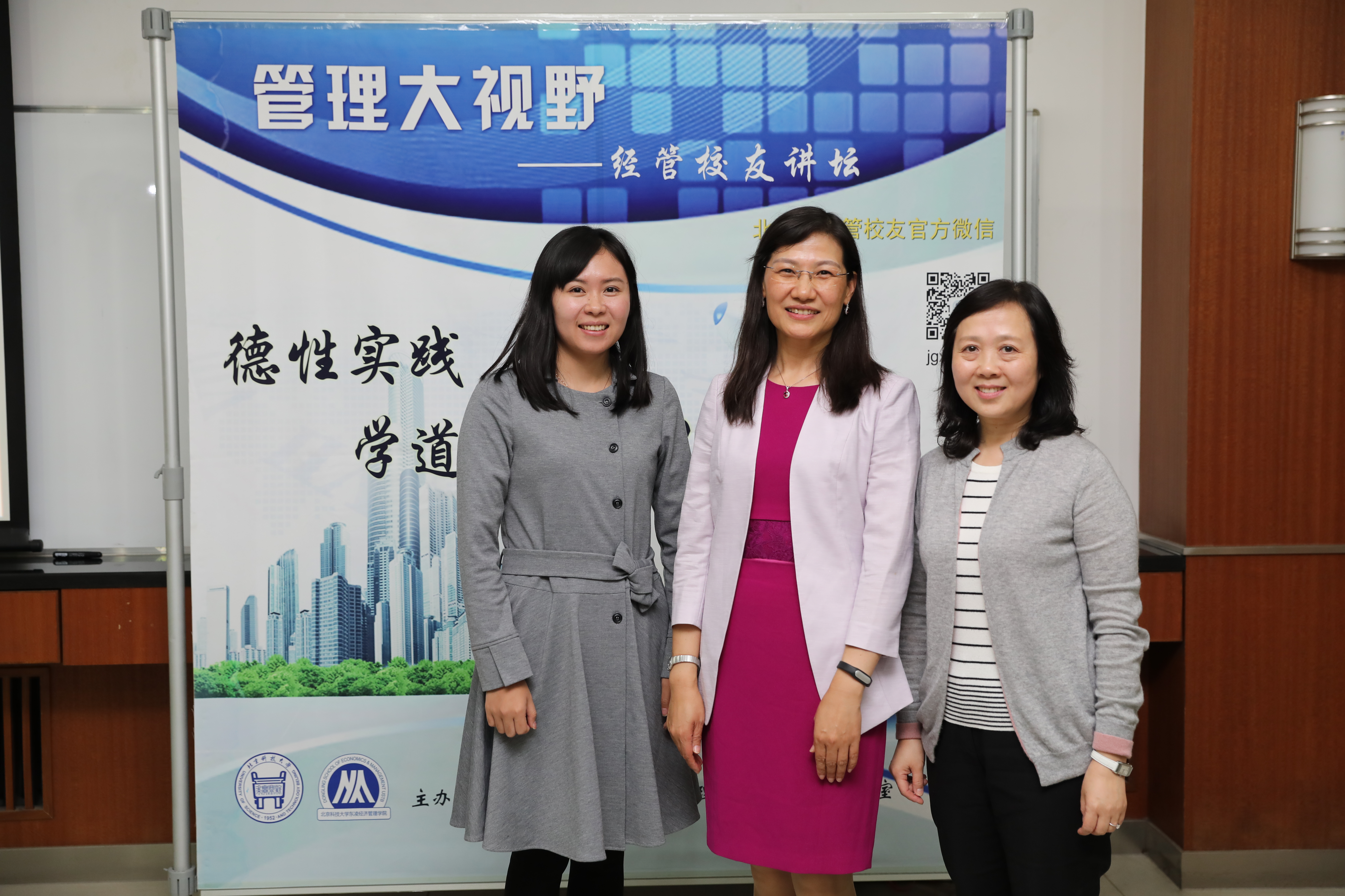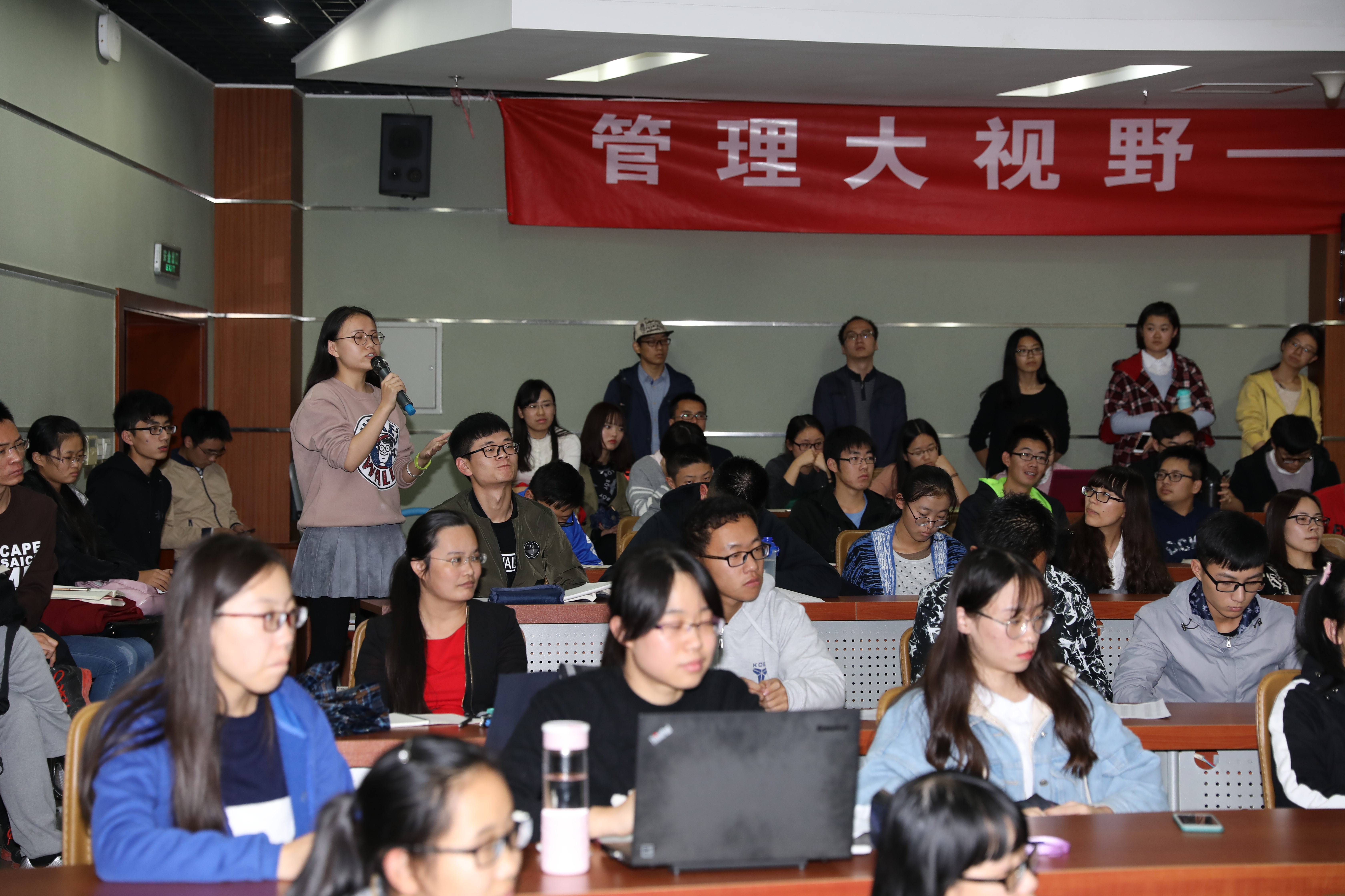 在提问环节,嘉宾与听众进行了充分的交流沟通,“活到老,学到老”、“审计工作要遵守职业道德”、“要加强自信和与人沟通的能力”等朴实中肯的建议使大家十分受益。在讲座最后的总结中,戴书记对校友的分享表示感谢并希望大家多关注经管校友活动和各期讲坛。合影留念后,活动结束。