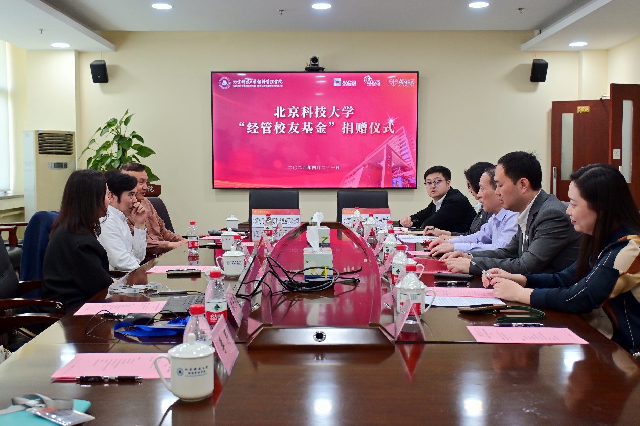 4月21日,北京科技大学“经管校友基金”捐赠仪式在经管楼809会议室举行。捐资人、管研87级校友、中国资源国际发展有限公司董事长林绍荣,中国资源国际发展有限公司董事长秘书陈晓意,校务委员会副主任、原副校长王维才,学校校友会办公室、基金会办公室主任闫奎铭,cgpay钱包下载 党委书记武森,党委副书记、副院长倪宇出席捐赠仪式。cgpay钱包下载 办公室、校友与基金办公室、教师代表、校友代表参加活动。仪式由cgpay钱包下载 党委副书记、副院长杨志达主持。