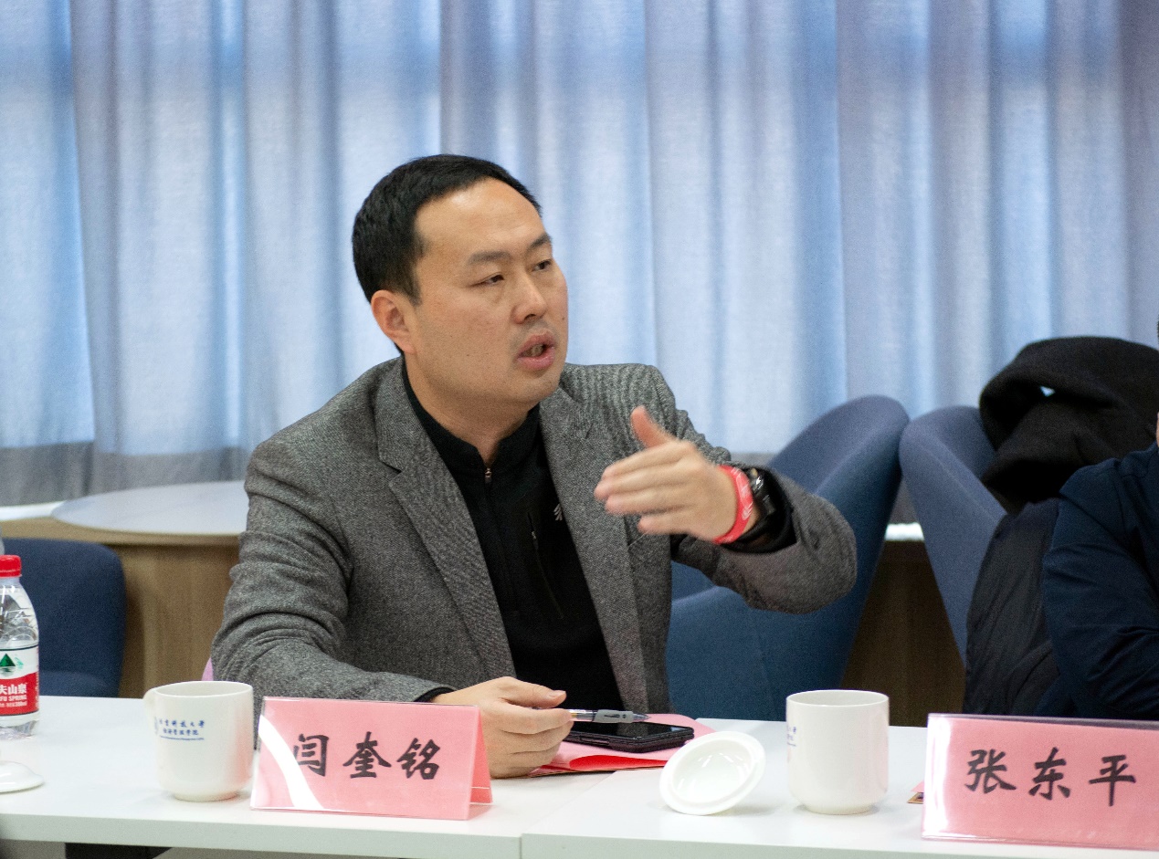闫奎铭对校友们积极参与校友工作表达了诚挚的欢迎与感谢,并详细介绍了学校校友工作开展情况及近期活动规划,鼓励广大校友积极参与校院两级校友会活动,广泛凝聚校友力量,共创校友工作新局面。