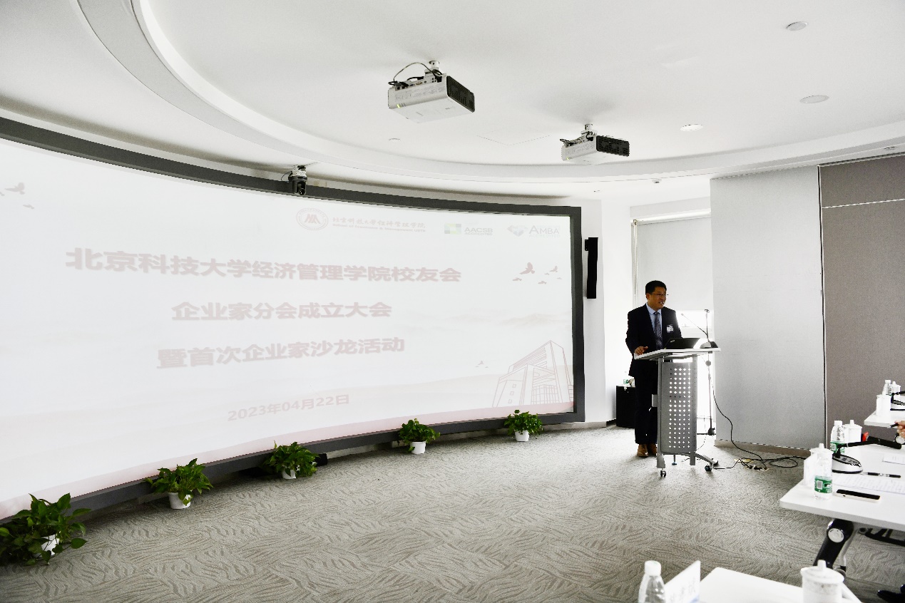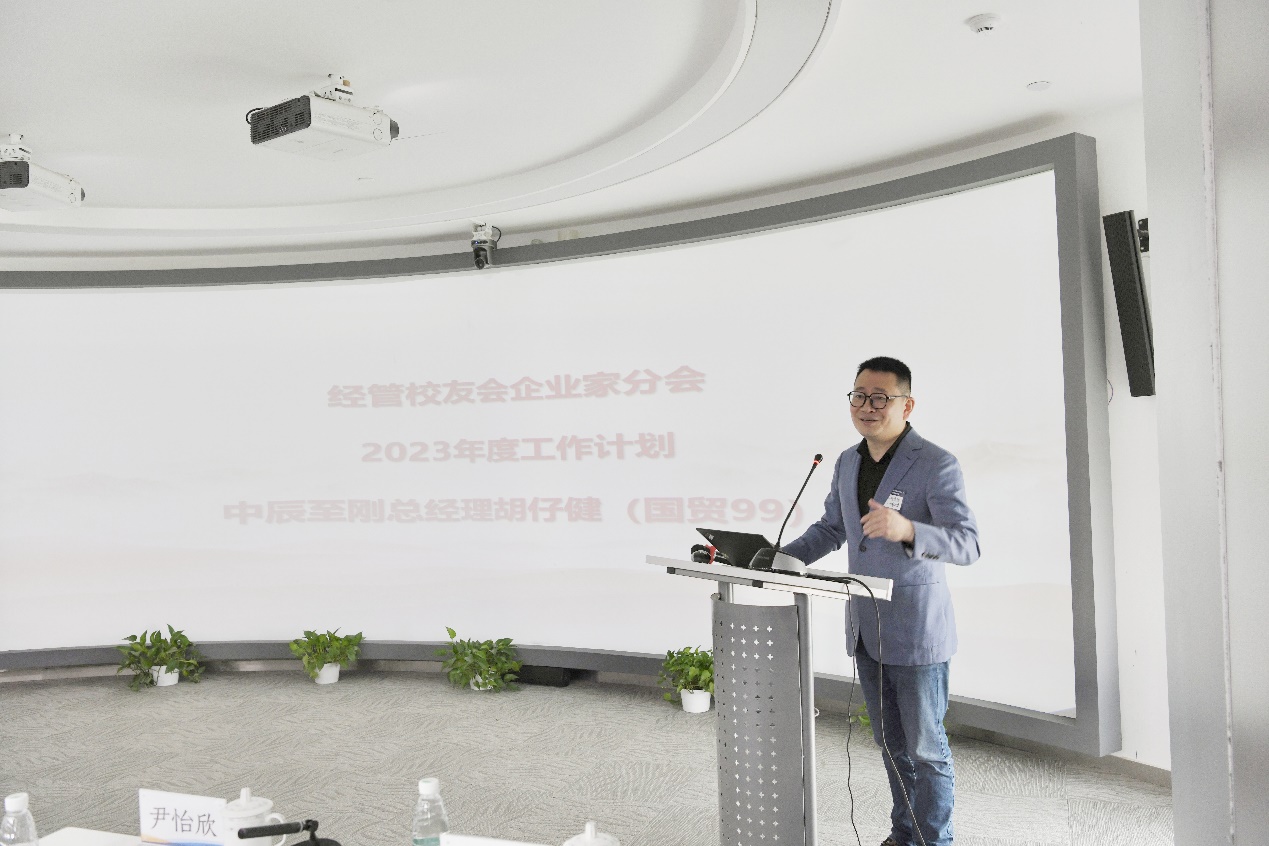 聘任仪式结束后,企业家分会副会长兼秘书长、北京中辰志刚科技有限公司总经理胡仔健汇报了2023年企业家分会年度工作计划。他表示,成立企业家分会的主要目的就是为经管企业家校友搭建一个终身学习、赋能成长并回馈母校的平台,同时加强校友交流,实现资源共享。胡仔健介绍了今年将要举办的企业家行业游学活动,春季在安徽开展“人力资源或先进制造”主题游学;夏季在黑龙江开展“矿产行业”主题游学;秋季在宁夏开展“军工行业”主题游学;冬季在浙江温岭开展“制造行业、大宗贸易”主题游学,他期待广大校友们积极参与。