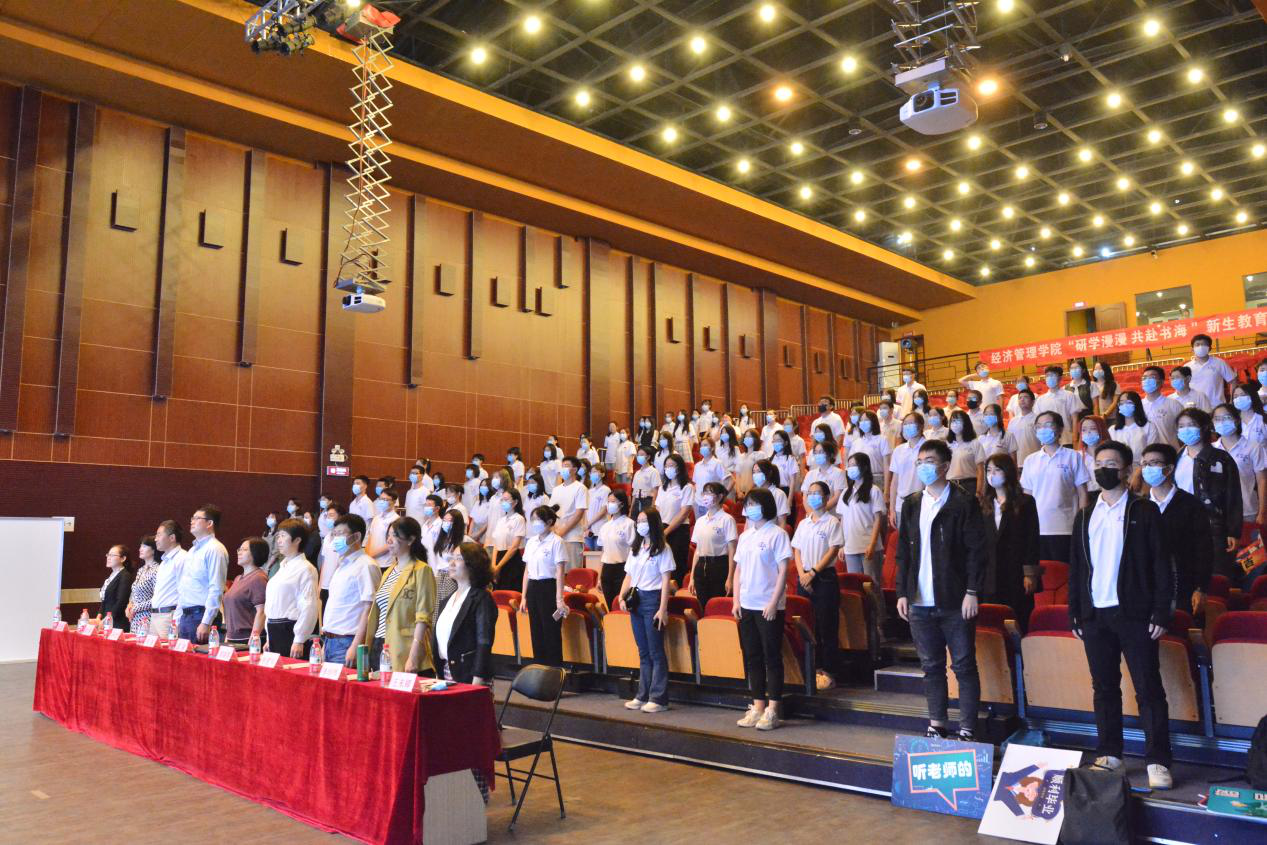 9月16日下午15:10,cgpay钱包下载-cgpay钱包官网 2021级研究生迎新大会在管庄校区文娱活动中心举行。参加此次大会的有cgpay钱包下载 党委书记武森、副院长黄晓霞、副院长谷炜、党委副书记倪宇、管理科学与工程系主任杨建华、工程管理与技术经济系主任马风才、工商管理系书记李晓辉、应用经济系主任冯梅、金融工程系主任王未卿、财务与会计系研究生班主任王红霞、cgpay钱包下载 学工办主任、博士生辅导员张晓佳、2021级普硕辅导员丁源以及全体21级新生,大会由cgpay钱包下载 党委副书记倪宇主持,开场全体起立,奏唱国歌。