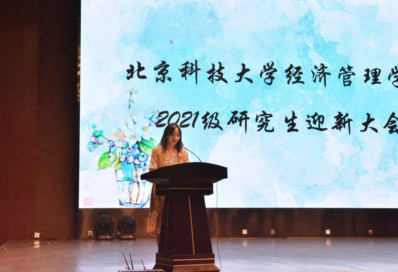 2021新生代表会计学专业李秋景同学发言,讲述了她本科期间在北京科技大学生活学习的经历,她表示在研究生期间她将利用好自己的时间,做好力所能及的每一件事情,勇敢成为更好的自己。
