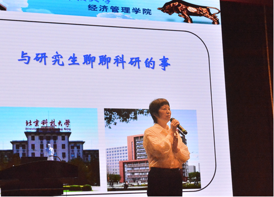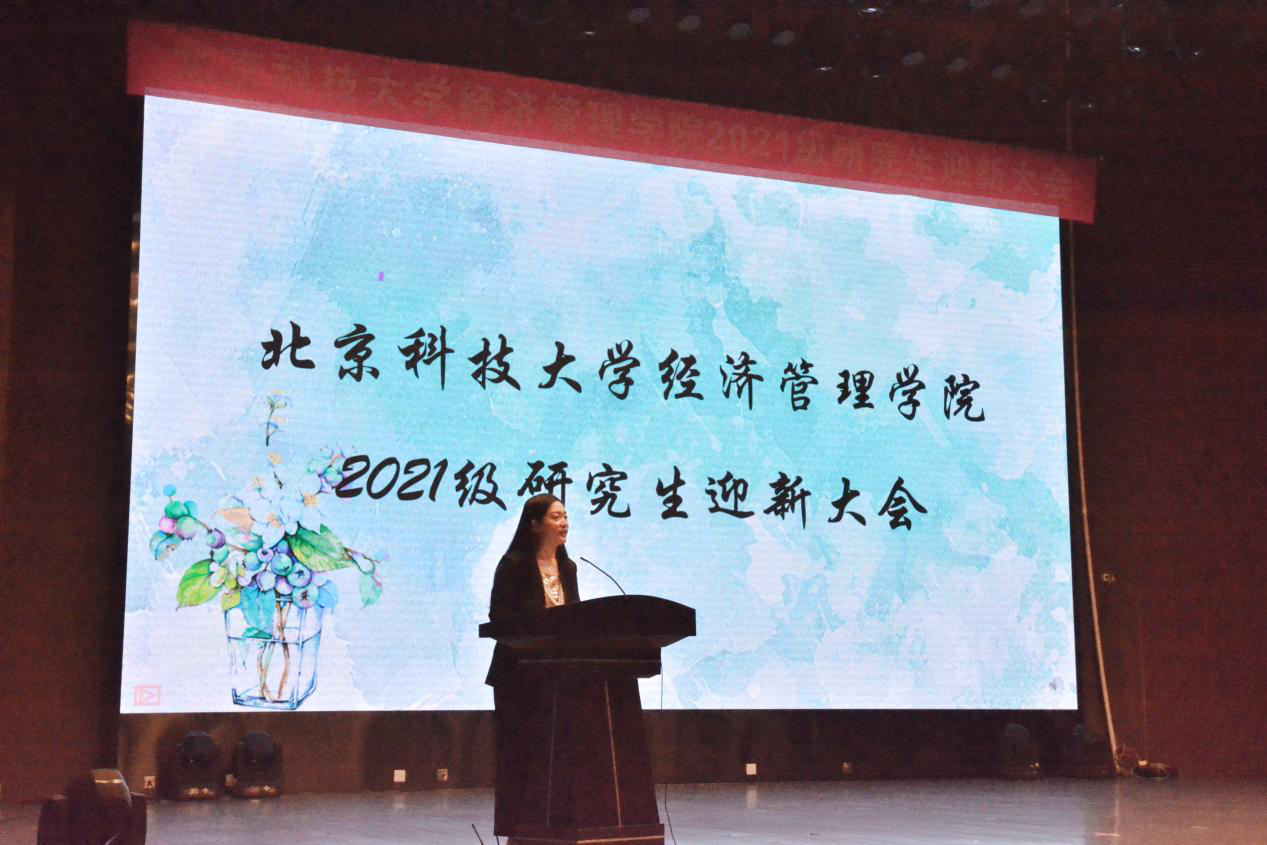 随后,在校生代表产业经济学专业20级张天月同学作为在校生代表,分享了自己在校的经历和感受,希望同学们能珍惜管庄校区优美宁静的环境,谱写属于自己的精彩研究生生涯。