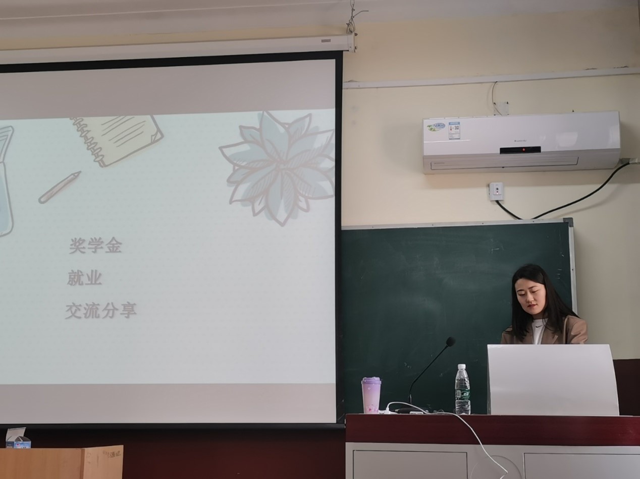 首先,辅导员李响为同学们讲述奖学金和就业情况,就金融研17-20届研究生的就业情况详细分析了金融学生的就业形势,希望同学们从自己的兴趣、价值观、性格出发寻找让自己满意的工作。