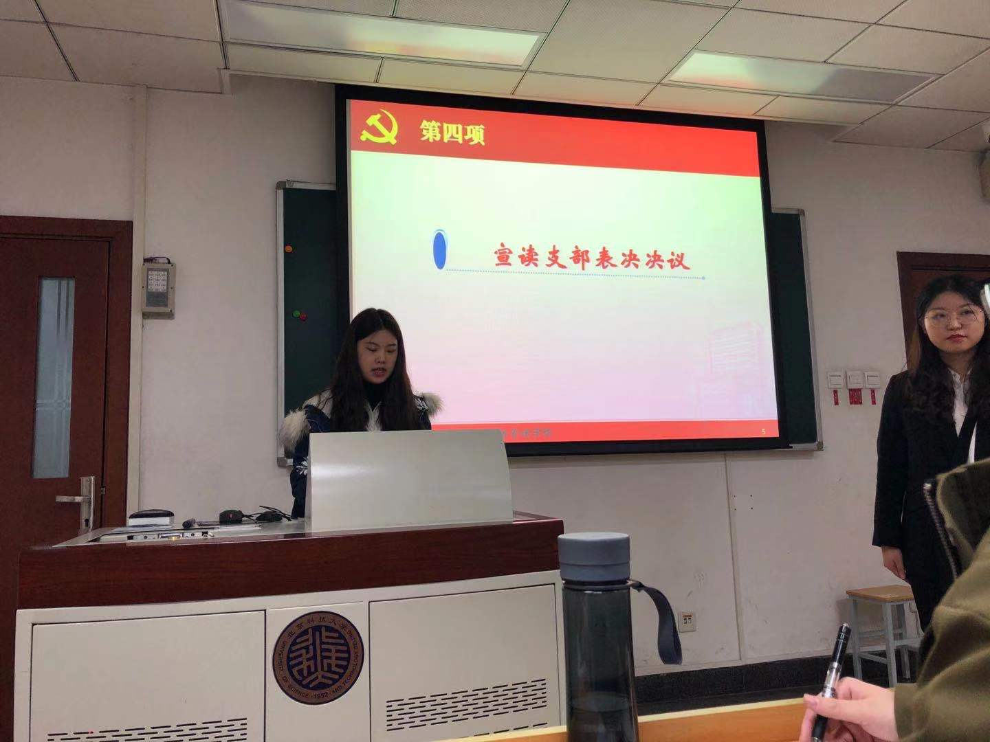 接下来进行第三项议程,学生党员的警示教育,要求我们学生党员严格规范自身行为,遵守党的纪律,时刻准备接受党组织对我们各方面的审查。