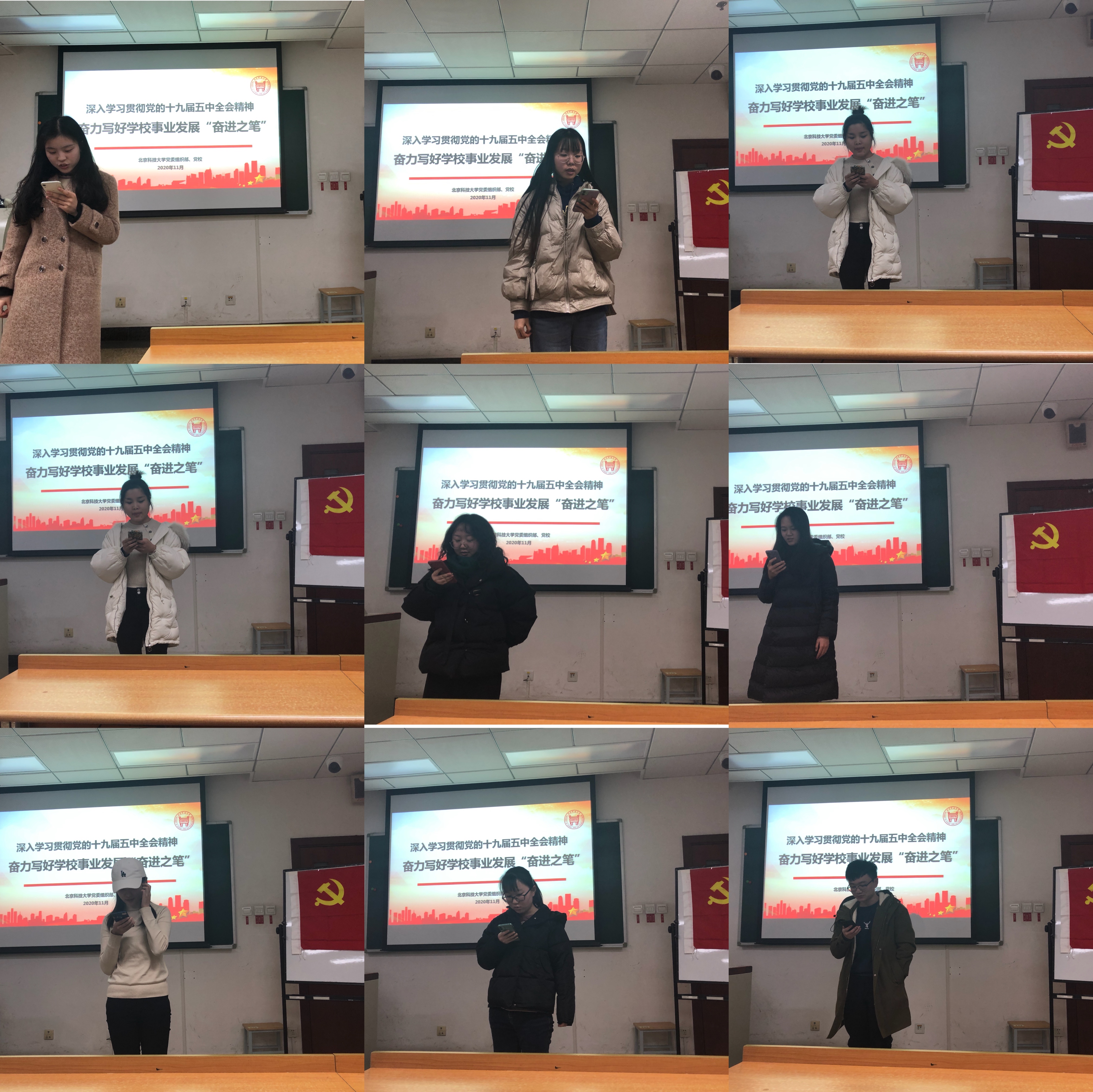 接下来进行会议第二项议程,十一月的组织生活教育学习,党员和积极分子分别分享学习感悟。大家都对十九届五中全会的精神进行了深入学习,也认识到作为一名党员所要肩负的责任,要深刻领会和贯彻全会精神,认真发挥党员的引领作用,不断加强自身的文明素养和社会责任感,做德智体美劳全面发展的社会主义建设者和接班人。