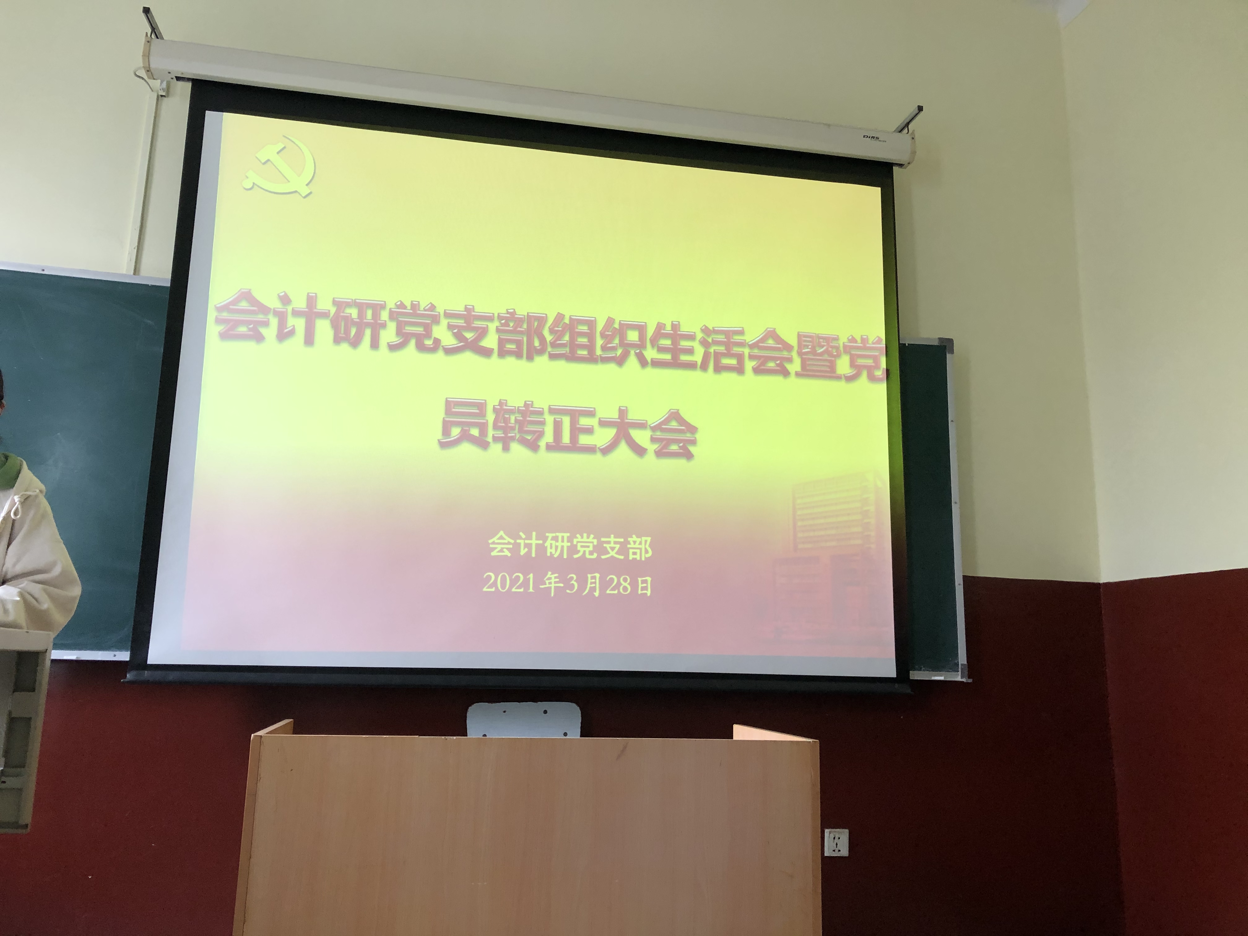 3月28日下午,会计研党支部在管庄教学楼214召开党员组织生活,研究生辅导员丁源、支部全体党员和积极分子参加会议,大会由支部书记童梦露主持。