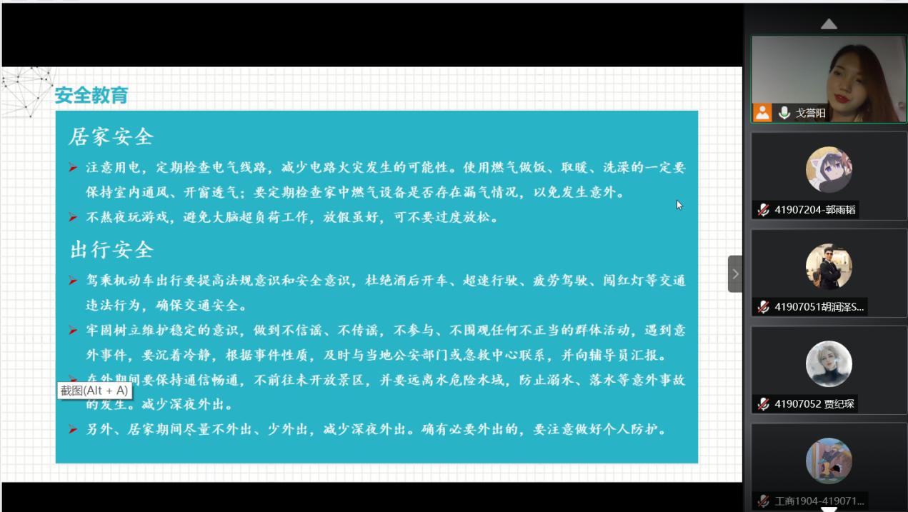 6月26日晚,cgpay钱包下载 本科19级工商管理类在线上召开了“假期安排·安全教育·启航大二”主题年级会,会议由辅导员戈誉阳主持开展,全体工商管理类学生参会。本次会议内容包括宣布暑假安排、进行安全教育,同时为即将踏入大二年级的同学们提出一些建议,帮助同学们合理安排假期,为大二的学习和生活做准备。