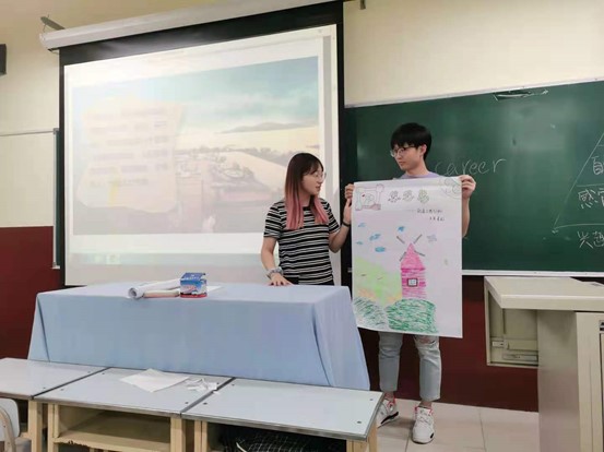 随后,辅导员李响从区别爱好和兴趣中,提出兴趣会驱使人们愿意去探索研究,是内心的动力,当所从事的事业是兴趣所在时将会是幸福的事情。辅导员李响开展兴趣岛小组游戏,设定6种岛屿,按愿意生活的岛屿类型分组,同学们积极讨论、集思广益,画出不同岛屿的同时,也展现了相应岛屿职业兴趣类型的特点。辅导员李响详细讲解6种霍兰德职业兴趣类型,希望可以帮助同学们找到自己的职业兴趣。