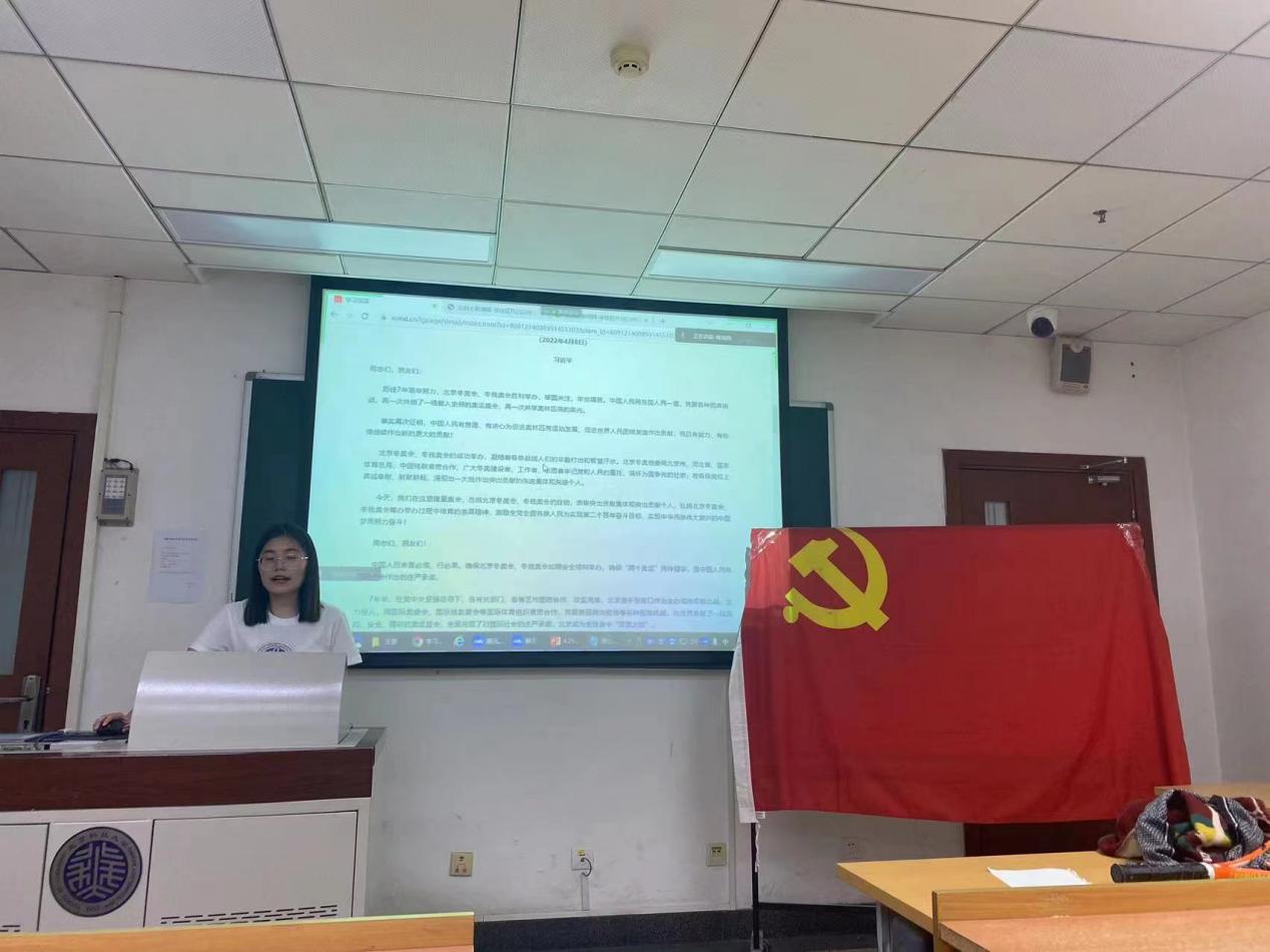 随后,支部成员学习贯彻习近平总书记在北京冬奥会冬残奥会总结表彰大会上的重要讲话精神,并传达了学校2022年全面从严治党工作会议和2022年安全生产工作会议的精神,引导支部党员大力弘扬北京冬奥精神,汇聚立德树人、助力发展的强大精神力量,以实际行动推动学校新一轮“双一流”建设和“十四五”规划落地见效。