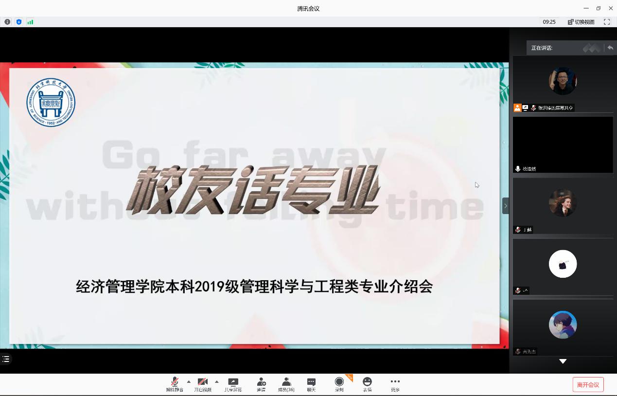 8月24日,cgpay钱包下载 2019级管理科学与工程类专业介绍会于线上召开,会议由cgpay钱包下载 辅导员张洪榛主持,徐展校友,王欣达校友,杨洋校友受邀参加分享,2019级管理科学与工程大类学生及部分家长参会。