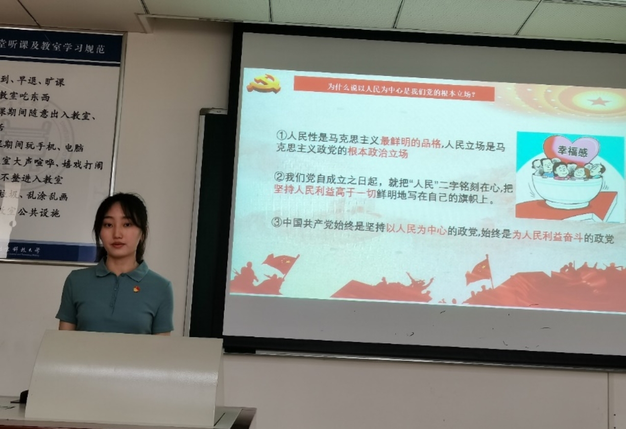 支部成员任霄霄认为党的指导思想、性质宗旨决定了中国共产党必然成为中华民族伟大复兴的历史担当者。正是中国共产党,带领全国人民在70多年的新中国建设中取得举世瞩目的成就,使中国在短短30多年里摆脱贫困并跃升为世界第二大经济体。