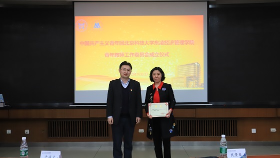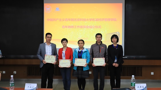 3月27日下午,中国共产主义青年团北京科技大学东凌cgpay钱包下载 青年教师工作委员会成立仪式在经管楼405隆重召开。出席成立仪式的领导和嘉宾有校党委书记武贵龙、校党委宣传部常务副部长兼教师工作部部长于成文、校团委副书记兼青年教师团工委书记于宝库、东凌cgpay钱包下载 院长闫相斌、党委书记武森、副书记温雅、副书记倪宇、关爱下一代工作委员会副主任佘元冠,团工委委员及青年教师代表。会议由武森书记主持。