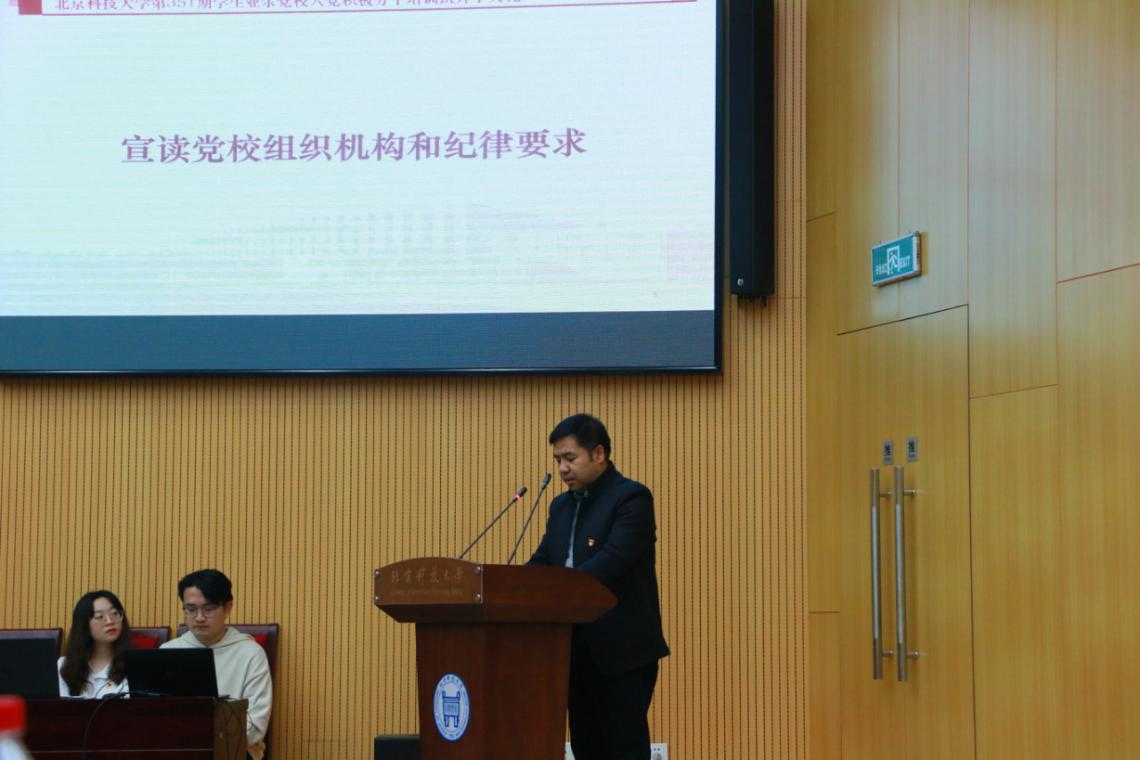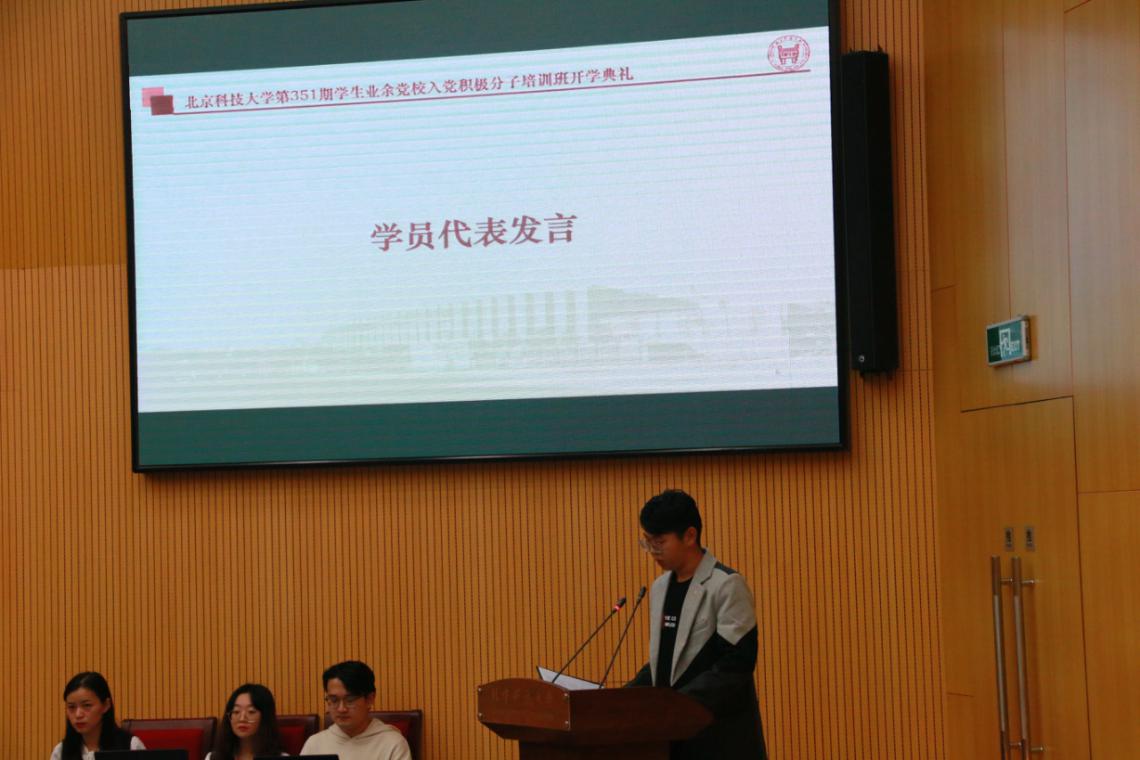 首先由主持人刘璐宣布北京科技大学第351期学生业余党校入党积极分子培训班开学典礼开始,同时全体起立,奏唱国歌。