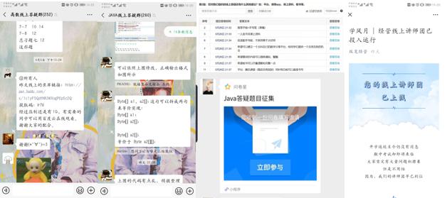 及时答疑解惑,营造善问多思的学习氛围。“学风建设月”期间,cgpay钱包下载 学辅中心继续积极开展学科答疑活动,线上组建微积分、java答疑互助群,覆盖人次400+。学生将不会的题目或知识点在群里提出,学业讲师或朋辈同学会及时作出解答。cgpay钱包下载 学辅中心每周都会举办直播答疑和知识串讲活动,每次有数十名同学参与,并且答疑结束后会收集反馈建议,修正改进活动细节,增进实效性,形成闭环体系。