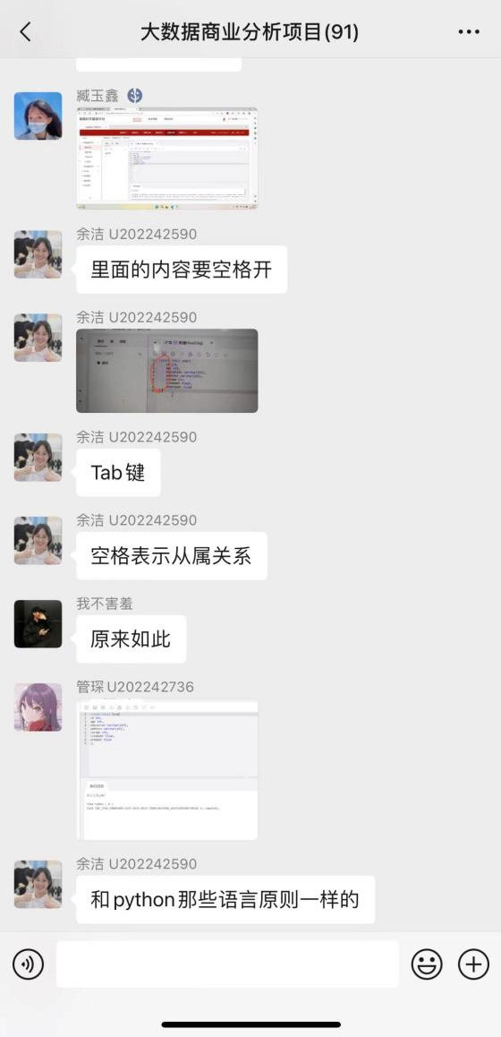 由于是第一次接触SQL系统,学员们上手还都有些困难,一边透过屏幕看着老师的演示,同时紧跟老师的步骤进行实操。对于有疑惑的内容,学员们在微信群,腾讯会议聊天区积极提问和互动。