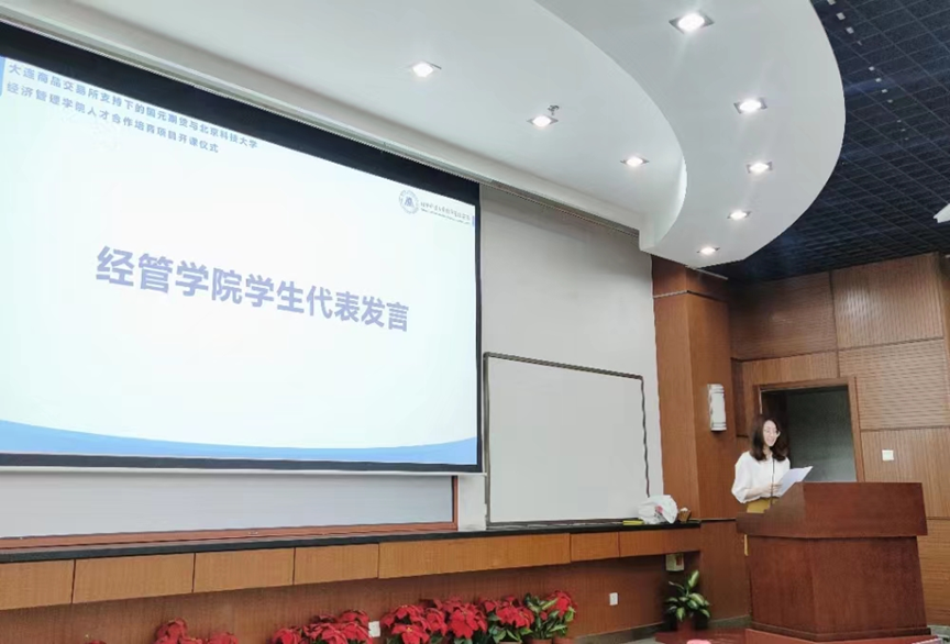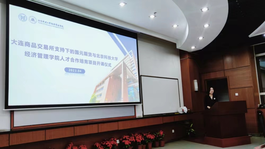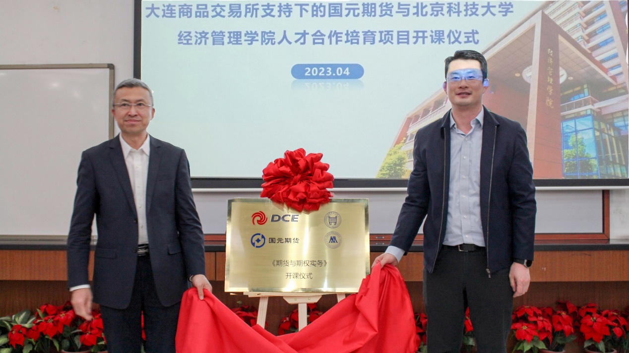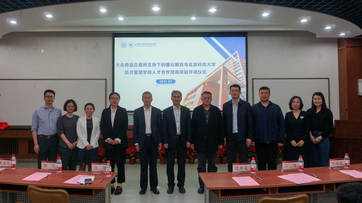 2023年4月19日19:30,大连商品交易所支持下的国元期货与cgpay钱包下载-cgpay钱包官网 人才合作培育项目开课仪式在经管楼313成功举办。国元期货董事长洪明,北京科技大学党委副书记、纪委书记戴井岗出席仪式并讲话。大连商品交易所研究中心总经理助理郭科、国元期货研究咨询部经理吴菁琛、国元投资管理(上海)有限公司副总经理孟令琳、cgpay钱包下载-cgpay钱包官网 院长谷炜、教务处副处长宋洪庆、cgpay钱包下载 金融工程系教师杨志明、cgpay钱包下载 金融工程系教师刘霞、cgpay钱包下载 团委书记李响出席此次开课仪式,同时参加的还有该人才合作培育项目的管理人员、老师和学员们。