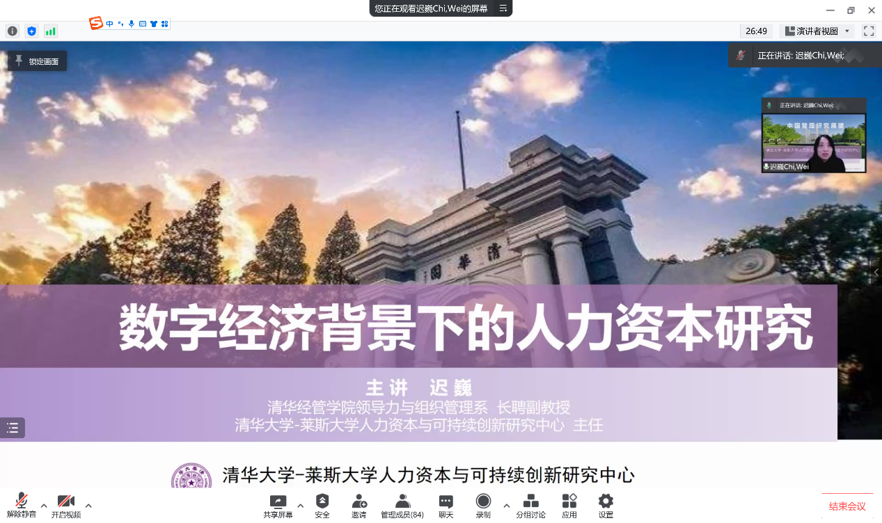 2022年3月11日下午,清华大学cgpay钱包下载 院长助理、清华大学-莱斯大学人力资本与创新研究中心主任迟巍副教授应邀给cgpay钱包下载 师生带来题为《数字经济背景下的人力资本研究》的学术讲座。cgpay钱包下载 共100余名师生参加了此次讲座。
