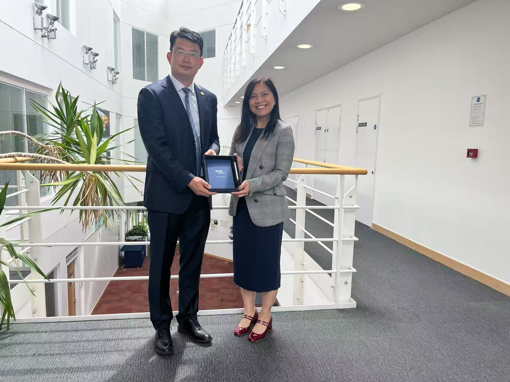 近日,cgpay钱包下载 院长谷炜教授率团访问英国萨里大学商cgpay钱包下载 (Surrey Business School)。萨里大学商cgpay钱包下载 院长Iis Tussyadiah教授、副院长Gang Li教授出席。双方围绕新商科建设、学术科研合作、人才联合培养等展开深入讨论,并达成合作共识。