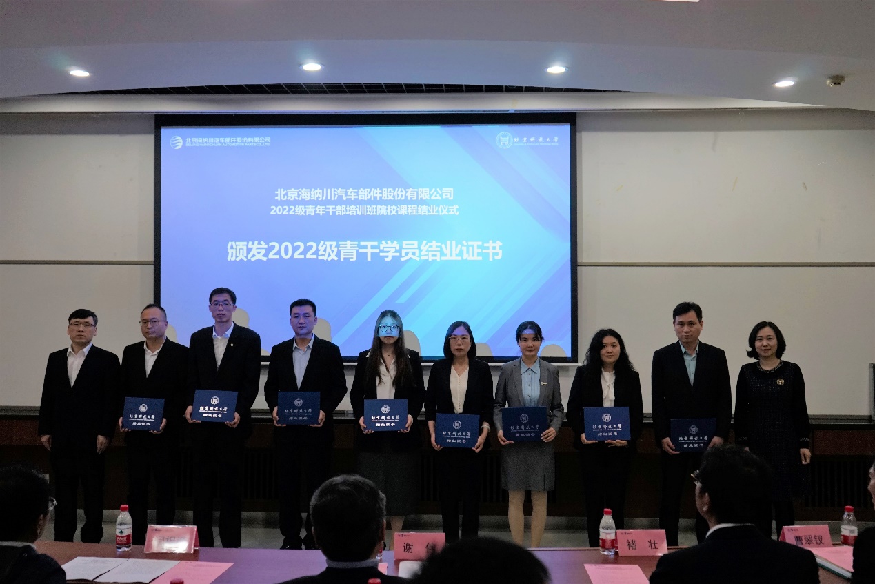 闫相斌向在此次2022级青干班顺利结业的学员们表示祝贺。他指出,学校与北汽集团在青年干部人才培养等多个领域一直保持着良好的校企合作,海纳川青年干部培训班是北京科技大学与北汽集团、海纳川公司校企合作的标杆项目、深化战略合作的新起点,双方将进一步促进人才科技交流,推动双方共同在新时代展现新作为、取得新发展,持续培养具有为国奉献钢筋铁骨的高素质人才。