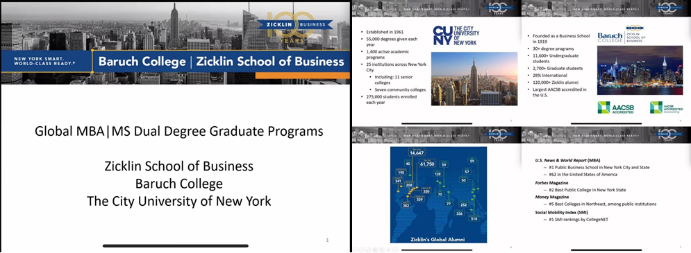 2022年12月14日晚,cgpay钱包下载-cgpay钱包官网 与纽约市立大学巴鲁克分校杰克林商cgpay钱包下载 合办的硕士双学位项目线上宣讲会顺利举办。宣讲会邀请杰克林商cgpay钱包下载 研究生项目执行主任HelaineKorn教授和国际项目专员Rong Yan老师进行项目介绍,cgpay钱包下载 国际合作与交流办公室主任赵霞以及来自学硕和MBA项目的三十余名学生参与了此次宣讲。