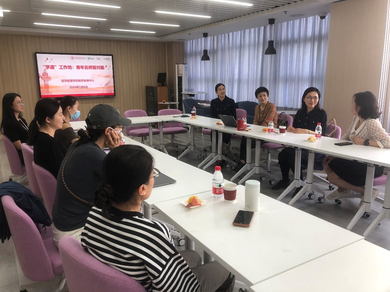 5月9日下午,cgpay钱包下载 教师发展中心在经管课栈(经管楼1205)举办题为“青年名师面对面”的“学道”工作坊,邀请北京市高等学校青年教学名师、北京科技大学数理cgpay钱包下载 储继迅教授与青年教师面对面深入交流。cgpay钱包下载 教师发展中心执行主任孙莹主持工作坊,副院长范小华参加本次交流活动。