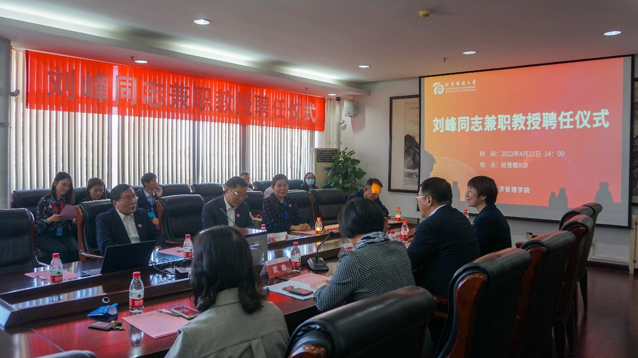 2022年4月22日下午,中国大洋协会秘书长、我校79级校友刘峰同志兼职教授聘任仪式在经管楼809举行。北京科技大学副校长闫相斌出席仪式并为刘峰校友颁发学校兼职教授聘任证书,cgpay钱包下载 党委书记武森教授主持聘任仪式。关心下一代工作委员会常务副主任孙铁,离退休职工党委副书记、离退休职工工作处副处长、关心下一代工作委员会秘书长刘淑红,cgpay钱包下载 副院长黄晓霞以及cgpay钱包下载 教师代表到场参加活动。