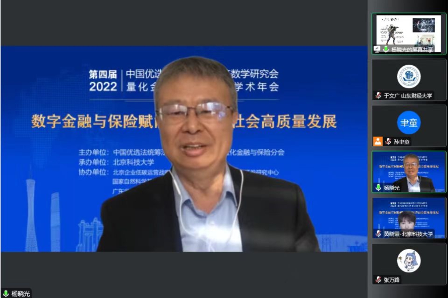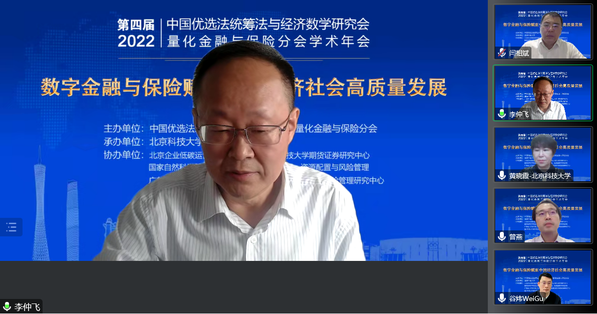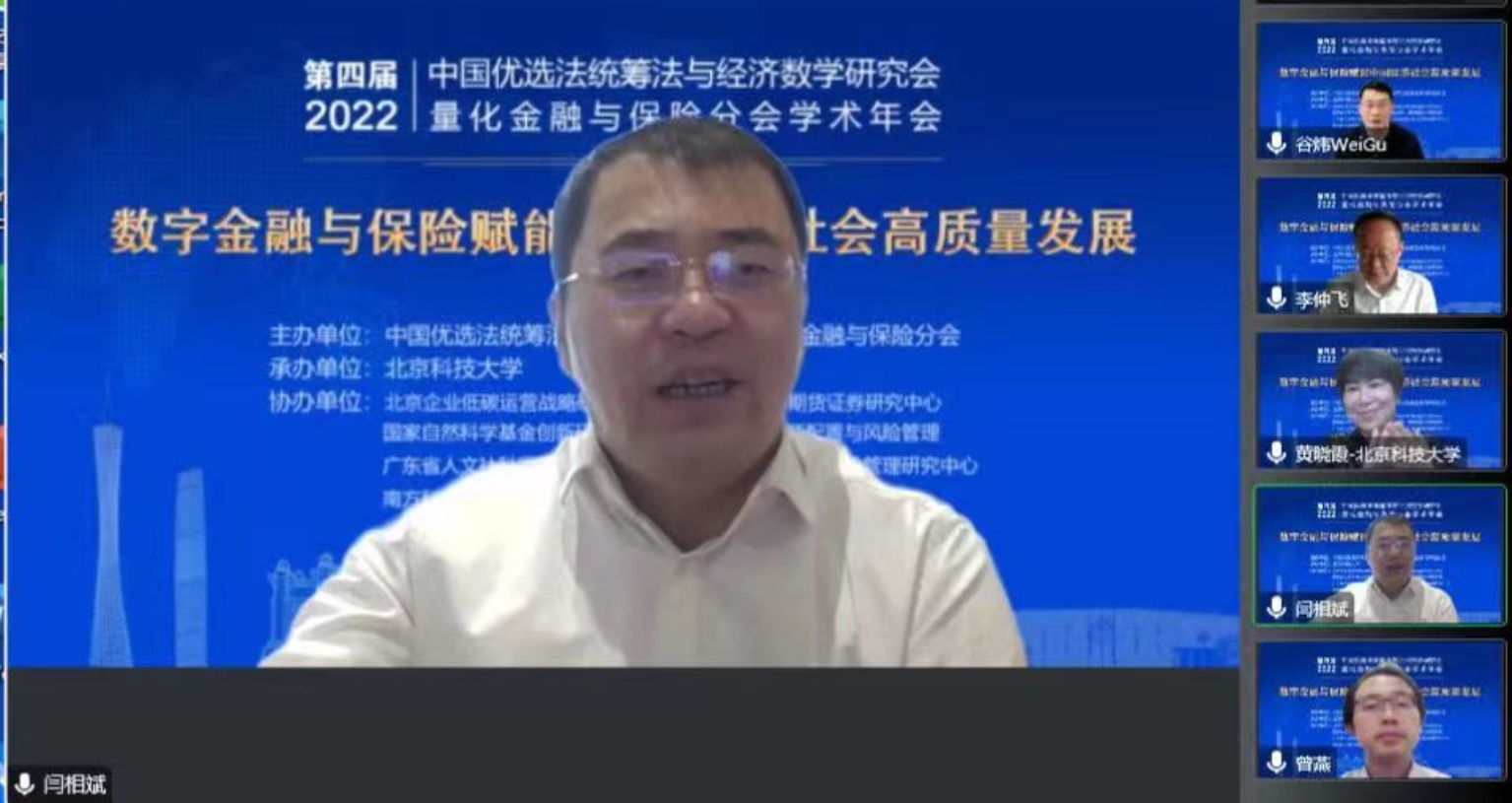 2022年12月3日至4日,第四届(2022)双法研究会量化金融与保险分会学术年会在线胜利召开。本届年会由中国优选法统筹法与经济数学研究会(简称中国“双法”研究会)量化金融与保险分会主办,北京科技大学承办,北京企业低碳运营战略研究基地、北京科技大学期货证券研究中心、国家自然科学基金创新研究群体:金融创新、资源配置与风险管理、广东省人文社科重点研究基地:中山大学金融工程与风险管理研究中心,南方科技大学商cgpay钱包下载 金融系协办。