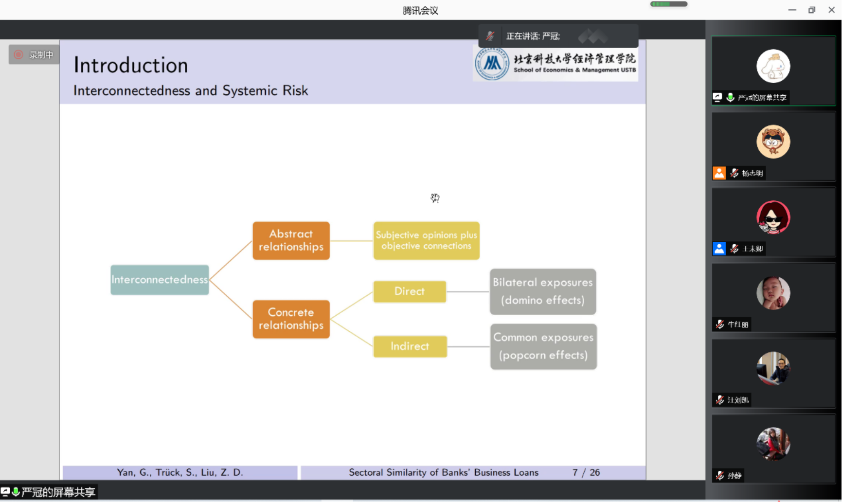 报告结束后,参会师生就系统性风险度量、复杂网络方法在研究中的应用、实证研究所面临的数据方面的挑战等问题展开深入讨论,严冠与在场师生积极互动,针对问题进行回应与交流,形成了友好探讨的学术氛围。