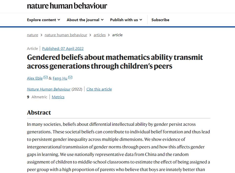 我院胡枫教授在 Nature 子刊《Nature Human Behavior》发表最新研究成果
