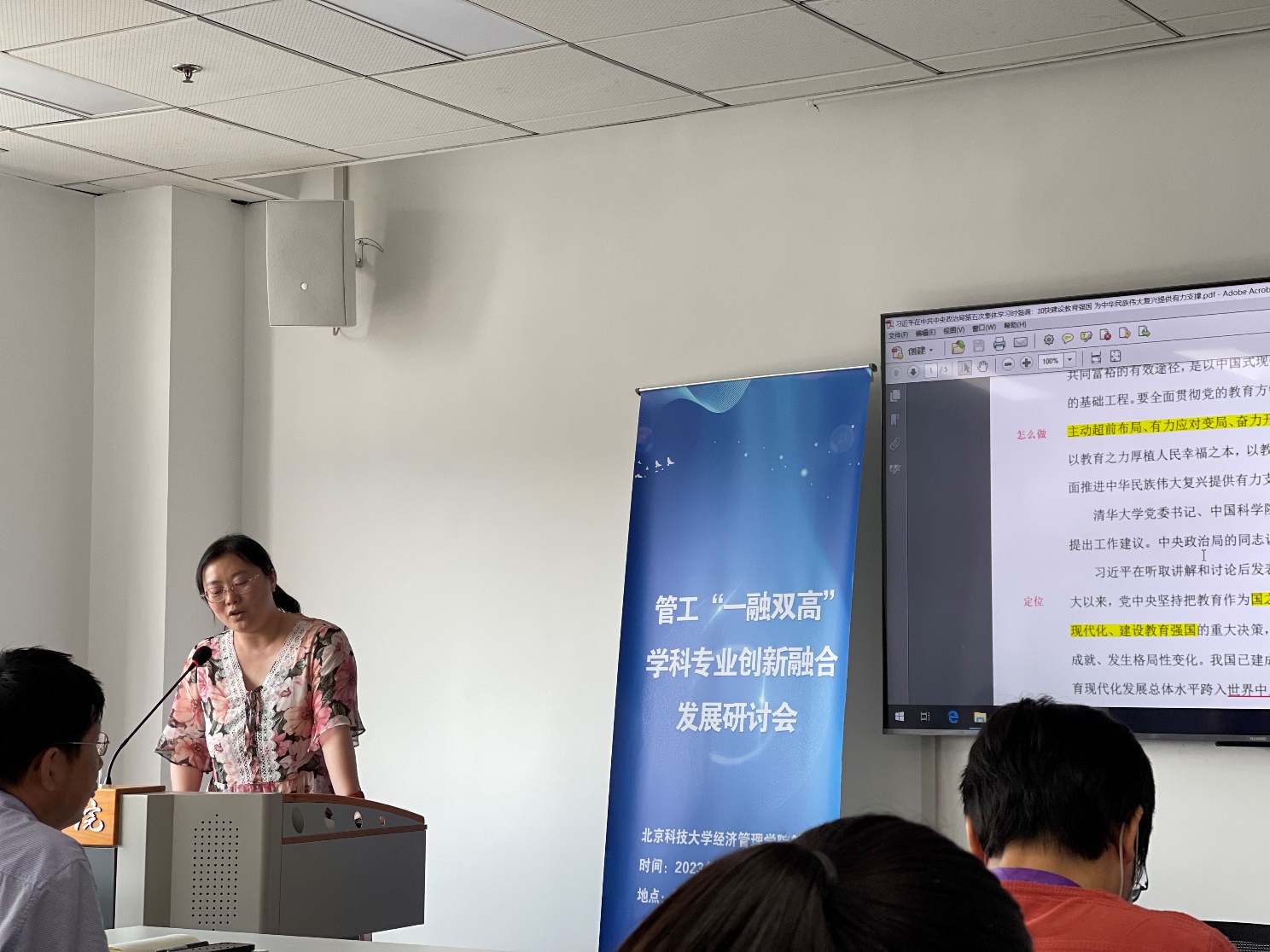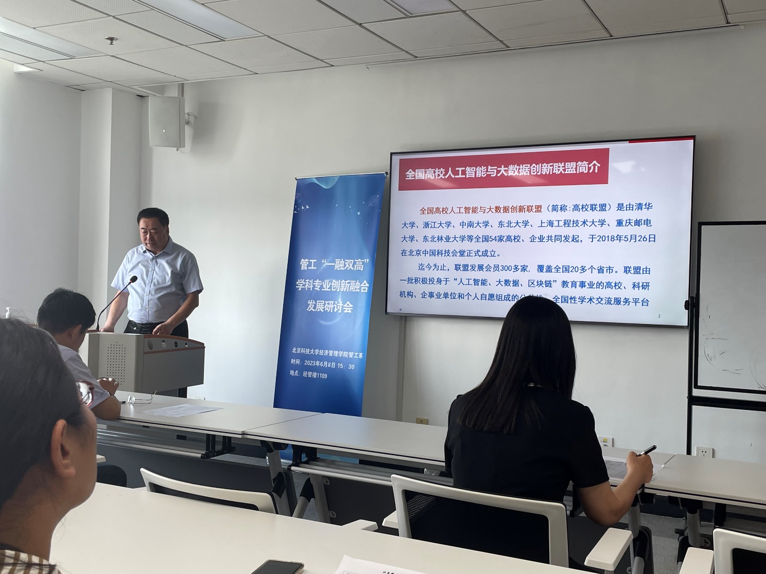 杨建华老师还特别提到了通过产学研融合,促进学科与专业融合,精益推进国家级一流本科专业建设点“信息管理与信息系统”、“大数据分析与应用”的课程群与教研室建设。目前双专业在软科2023专业排名中处于A类,其中大数据专业位列第6名。管工系已经形成以人为本,以学科“芯”驱动,引领双专业协同可持续发展的“一芯双翼”融合格局。在本年度,管工系党支部入选北京科技大学首批“一融双高”样板党支部建设,并荣获校级先进集体、先进党支部称号,形成了人才培养的专业思政特色,实现专业核心课与拓展课知识、能力教育与思想价值引领的有机融合。