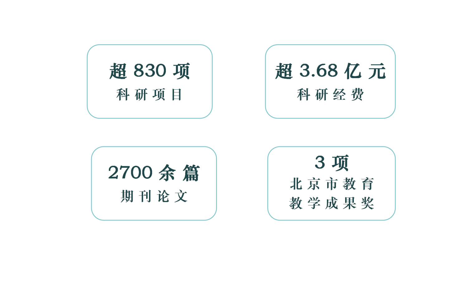 2015年以来,cgpay钱包下载 先后获得省部级等各类科研获奖近100项,承担了包括国家自然科学基金杰出青年基金、重点项目、国家社会科学基金重大招标项目等各类课题超830项,累计科研立项经费超3.68亿元,包含单项课题经费达千万元以上的、产生重大社会经济效益的企业委托项目。cgpay钱包下载 教师共发表期刊论文2700余篇,含SCI/SSCI期刊论文1300篇和CSSCI期刊论文510篇,其中UTD24/FT50列表期刊论文15篇;撰写出版专著72部、译著12部;编写教材88部。拥有国家级一流本科课程4门、北京市高校优质本科课程3门,国家级规划教材1本、北京市高校优质本科教材4本、以及北京市教育教学成果奖3项等丰硕的教学成果。